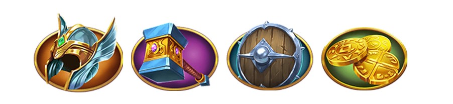 「頭盔、神槌、盾牌、金幣」「頭盔、神槌、盾牌、金幣」以數量來決定獲得獎金倍數。